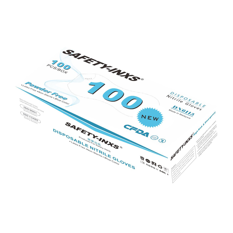 INXS®,3.5克光面指麻无粉蓝色一次性丁腈手套